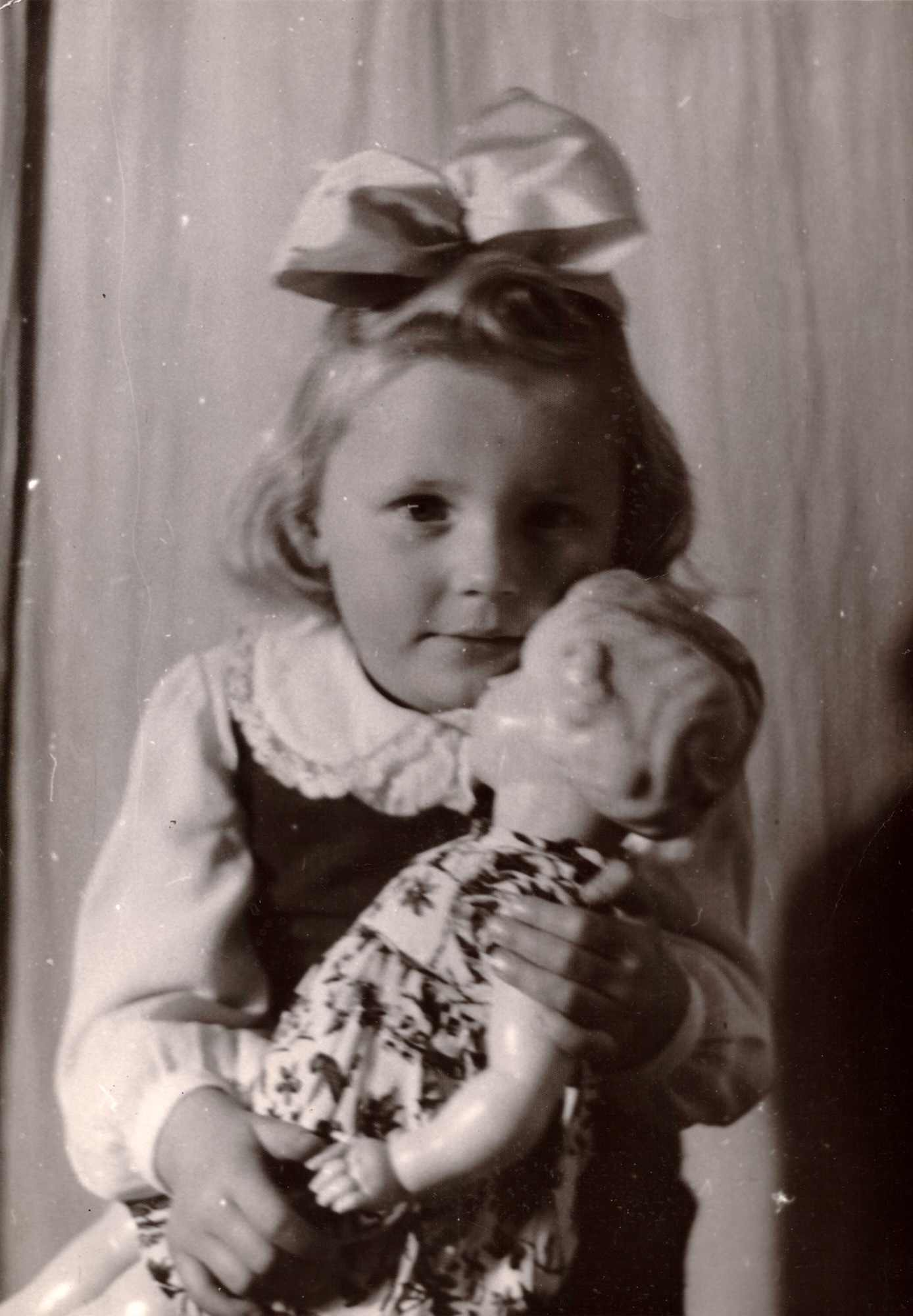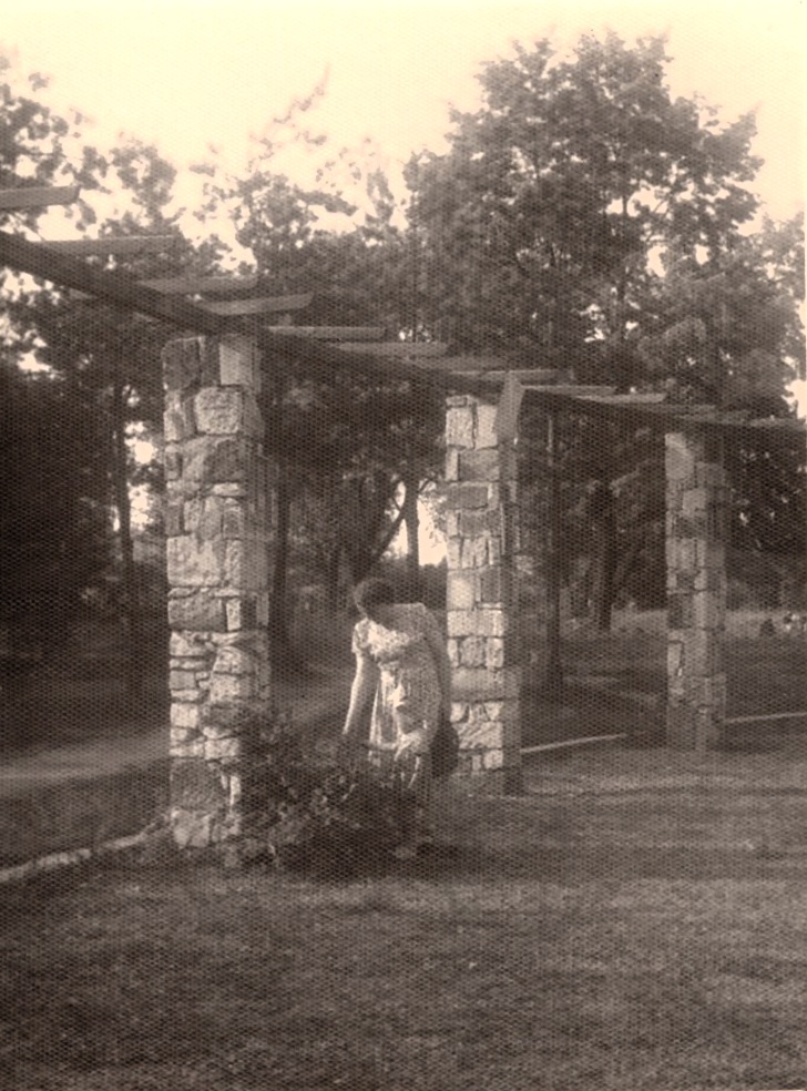 Na zdjęciu, które zrobił mój tata Józef Kropiewnicki, stoję w ogrodzie przed domem. To zdjęcie budzi we mnie miłe wspomnienia. O historii domu słyszałam co nieco od mojej mamy. Był zbudowany przed wojną przez mojego wujka Stefana Grabowskiego, bardzo zdolnego cieślę i murarza, z pomocą jego braci. Dom powstał oszczędnościowo, z jednospadowym dachem i ślepą ścianą przyklejoną do sąsiada. Był niewielki i skromny, miał dwa pokoje, ale wspaniałe okna. Dorośli mówili, że to okna weneckie. Może wtedy uważano je za eleganckie? Meble w środku były wyjątkowo piękne: rzemieślnicze art deco, komoda, toaletka, fotele, krzesła i stół z pięknym fornirem. Wszystko produkcji wujka! Na działce zostawiono miejsce na duży lepszy dom w bogatszej przyszłości.
